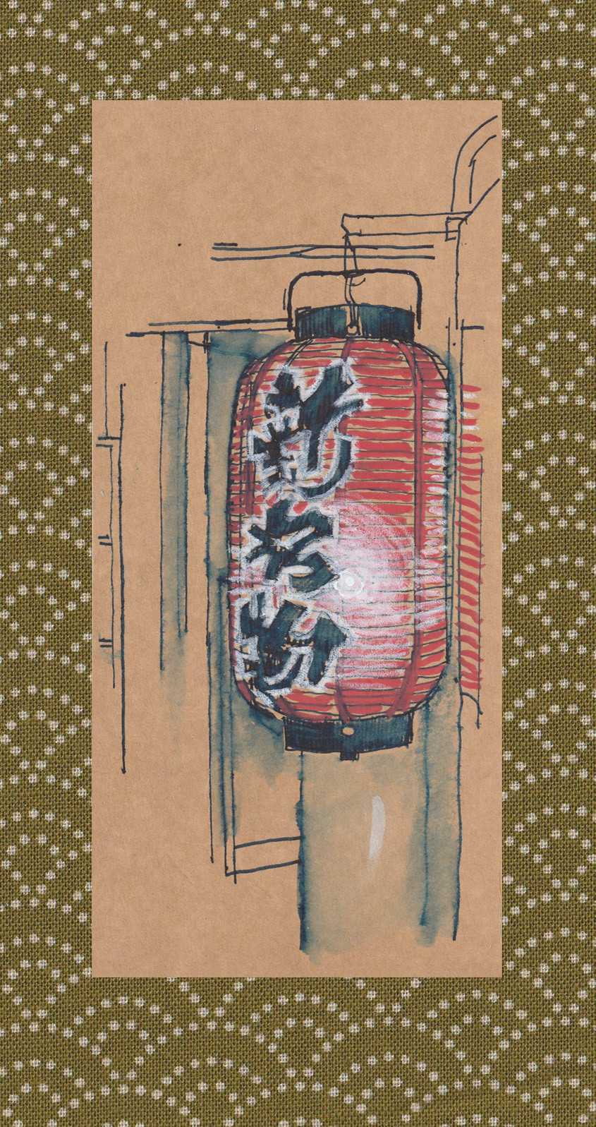 Fountain pen and Posca pen on ‘noodle-box’ card – 10cm x 21cm – in situ.